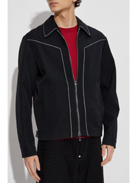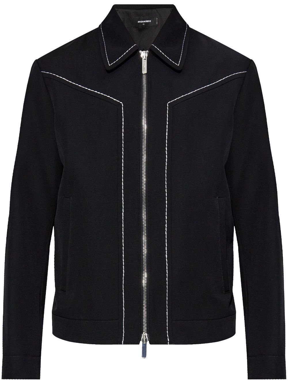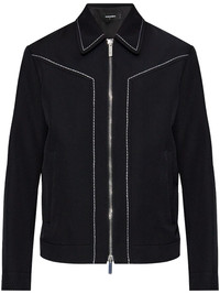 topstitched wool jacket Highlights - Black - Front two-way zip fastening - Classic collar - Two side welt pockets - Buttoned cuffs Made in Italy Composition Virgin Wool 100% Washing instructions Read Manufacturer Guidelines