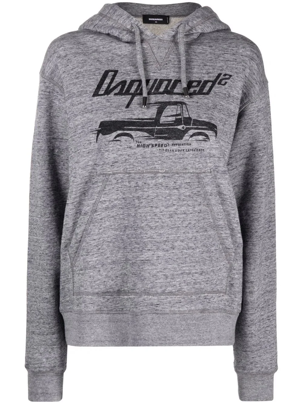 truck-print hoodie Pick up speed. This Dsquared2 cotton hoodie is printed with a truck motif on the front, accompanied by a logo print. Keep moving towards your style goals. Made in Italy Composition Cotton 100% SIZE & FIT Model measurements Height 5 ft 10 in(1.77 m) Bust/Chest 32.28 in(82 cm) Hips 36.22 in(92 cm) Waist 24.4 in(62 cm) FittingInformation This piece fits true to size. We recommend you get your regular size Cut for a loose fit Made with a mid-weight fabric Washing instructions Dry Clean Only
