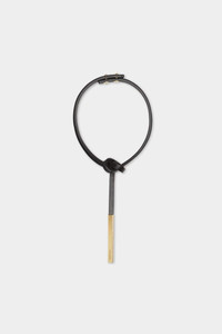 - PRODUCT ID : NEW032811301639M1159UN - MADE FROM LEATHER - KNOT DETAIL - GOLD METAL TIP - ENGRAVED DSQUARED2 LETTERING - BUTTON STUD CLOSURE STRUCT: 100% CALF LEATHER; ACC COMP: 100% BRASS This knotted leather necklace is embellished with a gold metal tip for a sleek look that screams quiet luxury. Team with your favourite LBD for an effortless evening look.