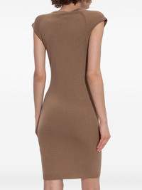 logo-embroidered bodycon dress Highlights - Brown - Cap sleeves - Crew neckline - Fitted design - Knee-length hem Made in Italy Composition Wool 86%, Polyamide 14% Washing instructions Read Manufacturer Guidelines