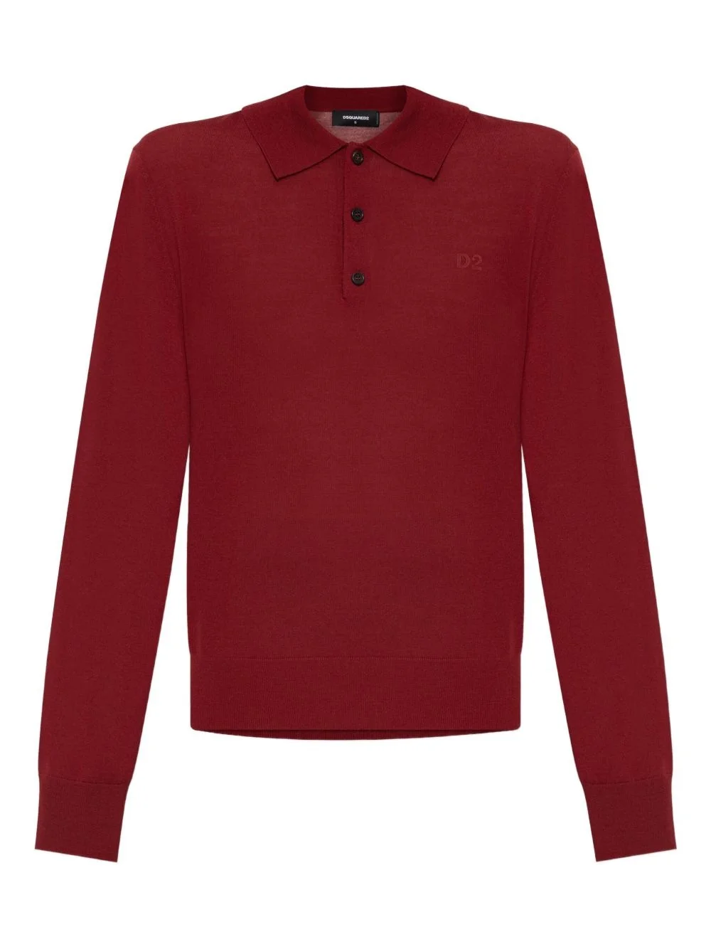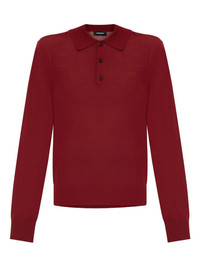 long-sleeve polo top Highlights - Deep red - Classic collar - Button placket - Embroidered logo - Ribbed cuffs - Relaxed fit at hem Imported Composition Virgin Wool 100% Washing instructions Read Manufacturer Guidelines