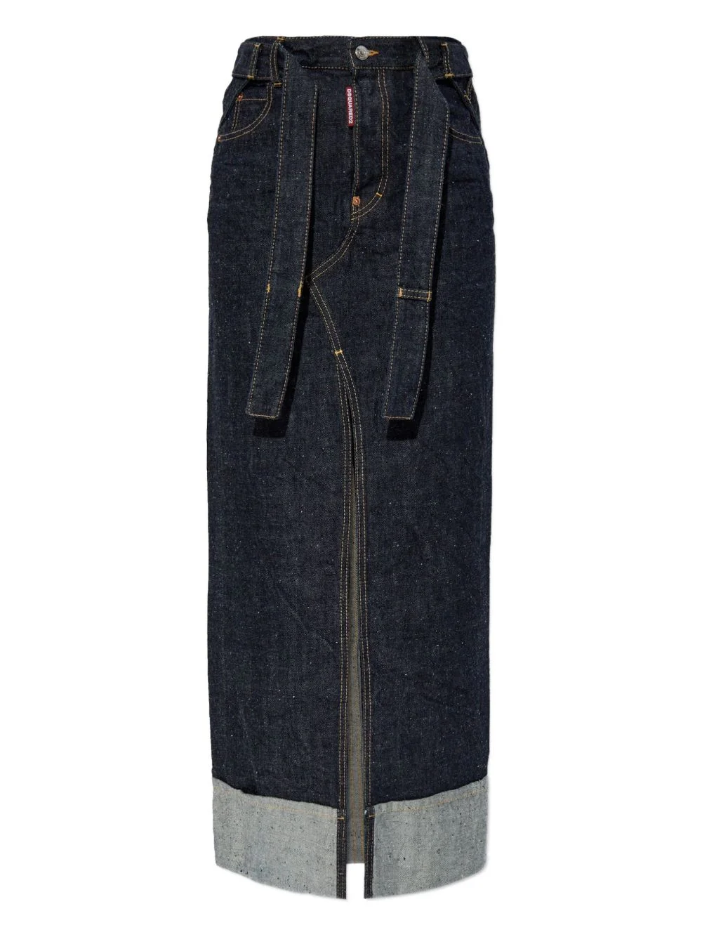 x Magliano belted midi skirt Highlights - Dark blue - Belted - Front slit - Zip fastening - Rear pockets Made in Italy Composition Cotton 100% Washing instructions Read Manufacturer Guidelines