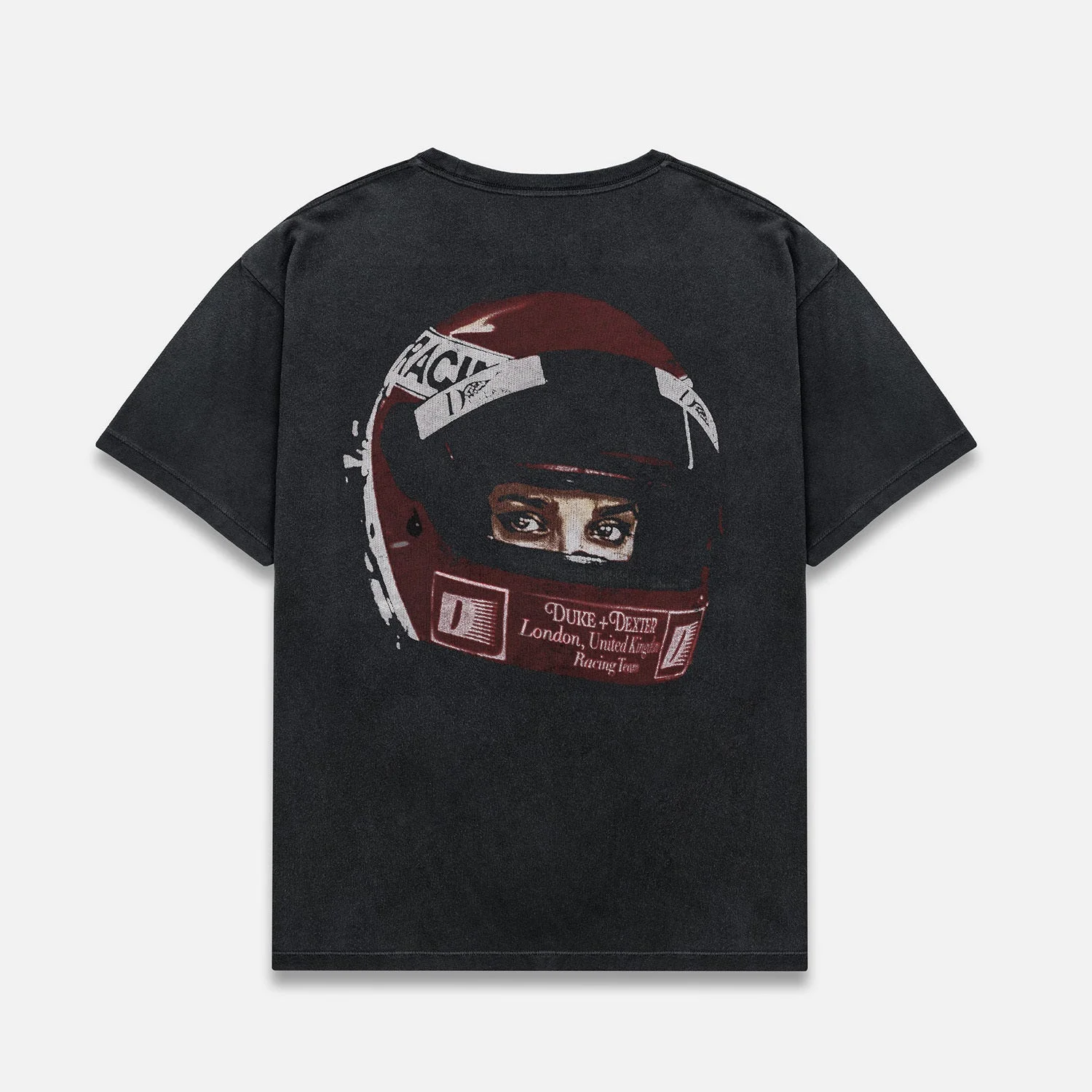 Our in-house artist Valentino created the helmet graphic as part of DR1, and it’s been a favourite ever since. Screen-printed at the back of this T-shirt, it’s made from 220GSM cotton-jersey that’s aged to look like an archive piece. SPECIFICATIONS Fit Oversized Composition 100% Organic Cotton Weight Custom-knitted 200gsm jersey Detail Soft hand-feel. Back neck and shoulder taping. Custom fade-out dye with manual corrosive finish Packaging All our packaging is made from recycled materials Origin Handmade in Portugal