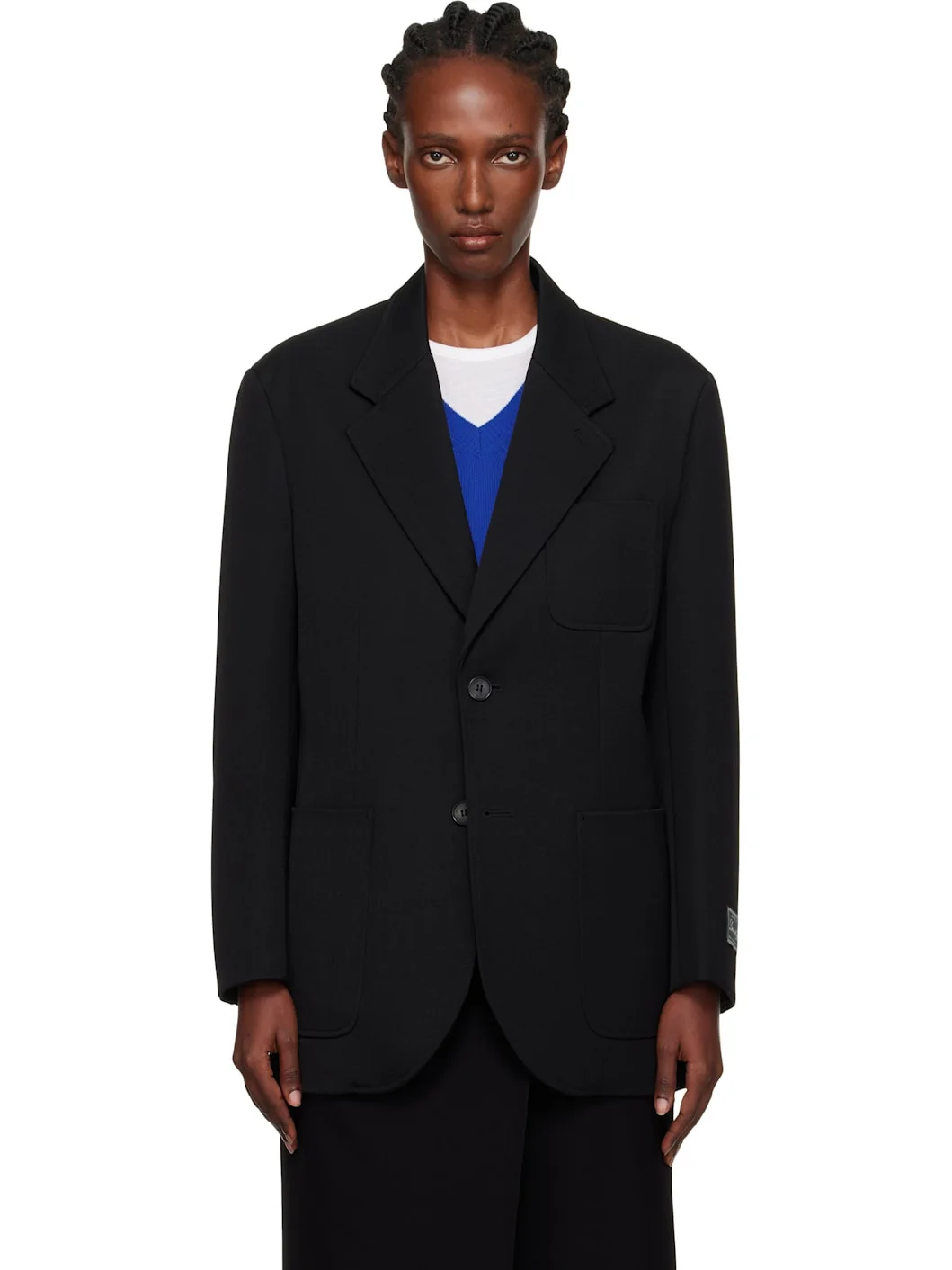 Wool-blend twill blazer. · Notched lapel · Button closure · Patch pockets at front · Logo patch at cuff · Surgeon's cuffs · Welt pocket at interior · Full satin lining Supplier color: Black Body: 52% polyester, 48% wool. Trim: 75% polyester, 20% wool, 2% nylon, 1% acrylic, 1% rayon, 1% other fibers. Lining: 100% polyester. Made in Viet Nam 252965F057001