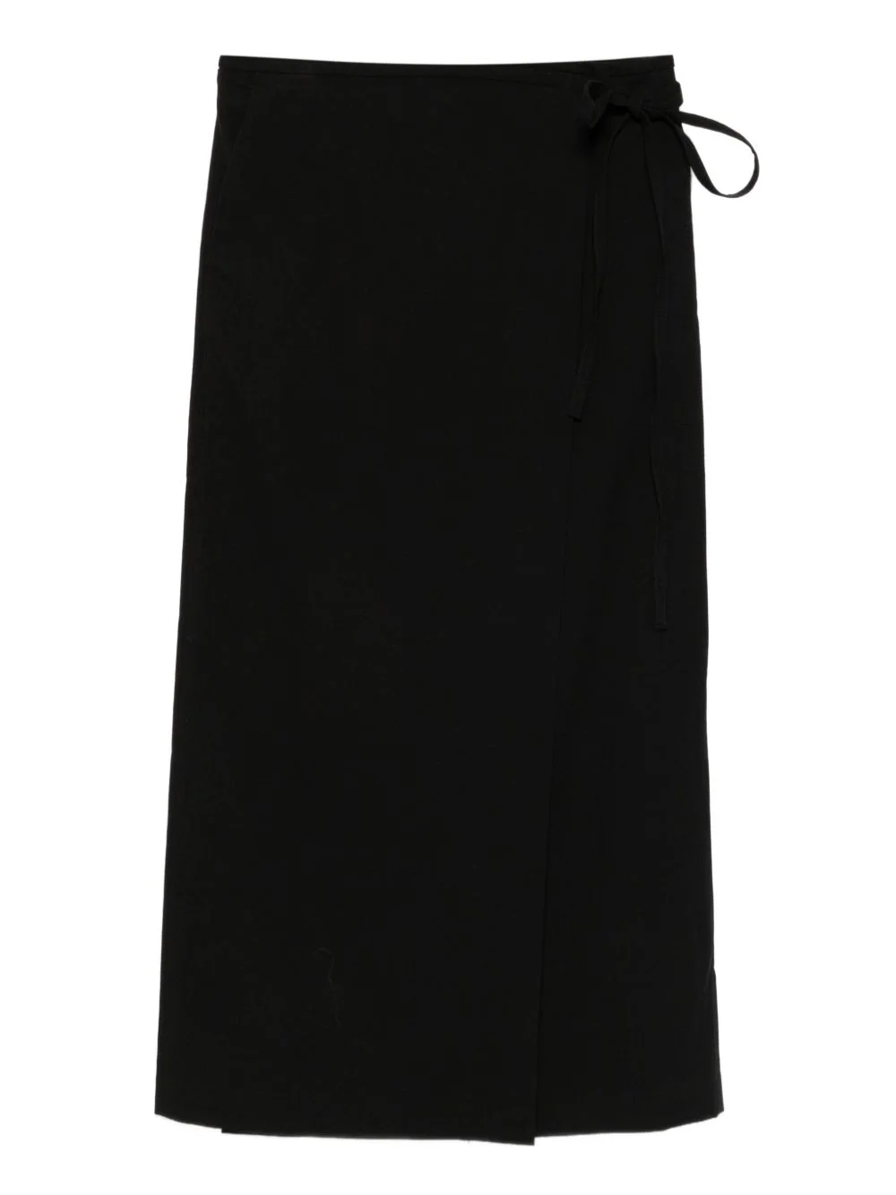 wrap-tie skirt Highlights - Black - Wrap-around style - Tie fastening - Midi length - Straight hem - A-line shape Imported Composition Outer: Polyester 63%, Rayon 18%, Wool 17%, Polyurethane 2% Lining: Polyester 100% SIZE & FIT Model measurements Height 5 ft 10 in(1.78 m) Bust/Chest 31.49 in(80 cm) Hips 37 in(94 cm) Waist 23.62 in(60 cm) Washing instructions Read Manufacturer Guidelines