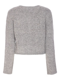 collarless boucle cardigan Highlights - Grey - Front button closure - Crew neck - Front pockets - Boucle effect Imported Composition Acrylic 28%, Alpaca 26%, Wool 23%, Nylon 20%, Polyurethane 3% Washing instructions Read Manufacturer Guidelines