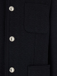 front-pocket jacket Highlights - Black - Round neck - Button fastening - Patch pocket - Welt pocket - Braid trim Imported Composition Cotton 50%, Nylon 15%, Polyester 13%, Wool 12%, Rayon 10% Washing instructions Read Manufacturer Guidelines