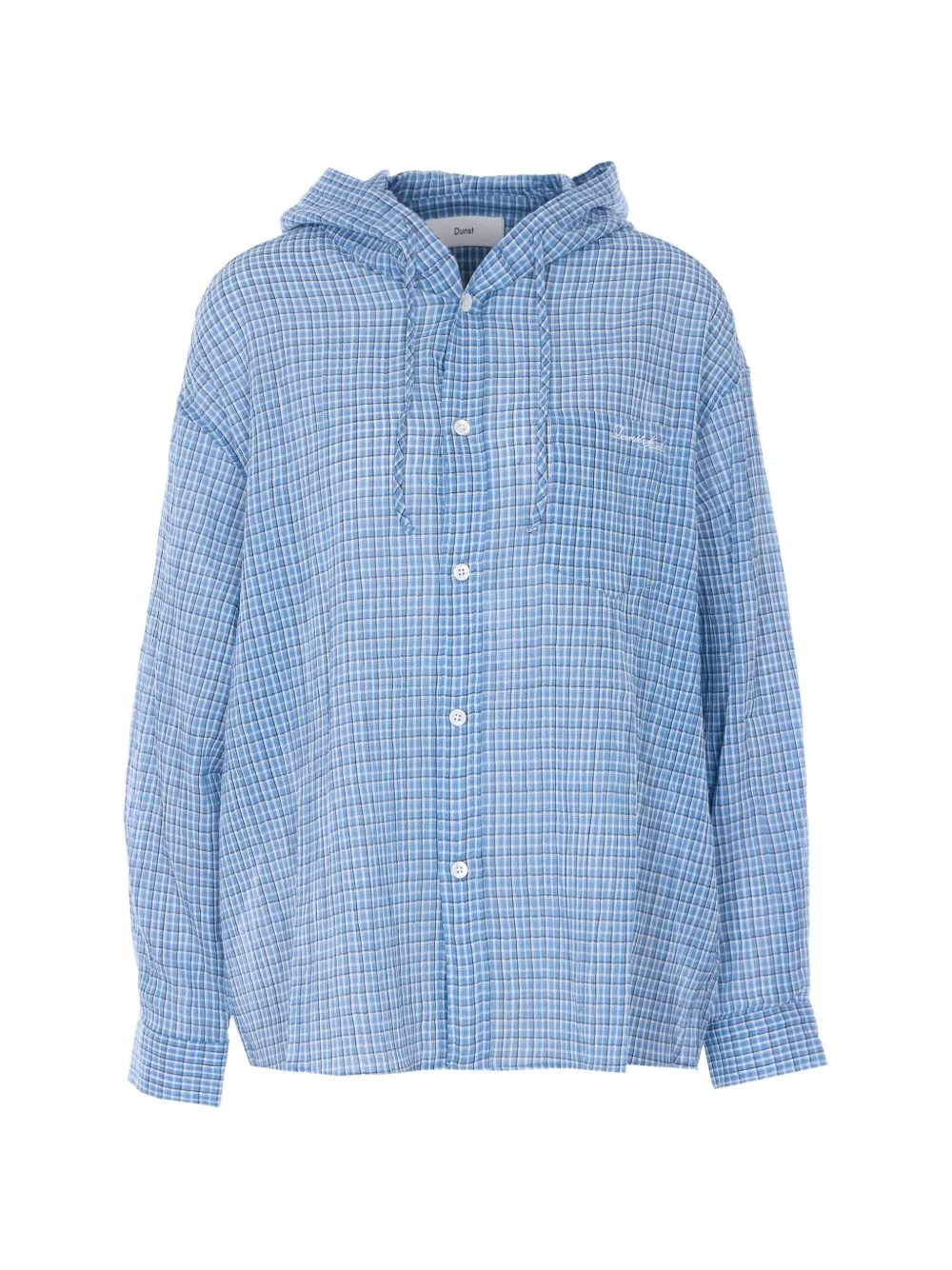 hooded checked-pattern shirt Highlights - Blue - Checked pattern - Front button closure - Drawstring hood - Long sleeves - Buttoned cuffs Imported Composition Cotton 100% Washing instructions Read Manufacturer Guidelines