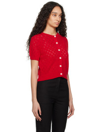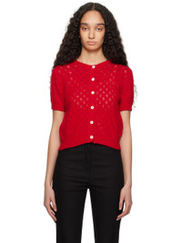 Crocheted cotton- and linen-blend cardigan. · Rib-knit crewneck, hem, and cuffs · Button closure · Logo-engraved hardware Supplier color: Red 87% cotton, 13% linen. Made in South Korea 251965F095011