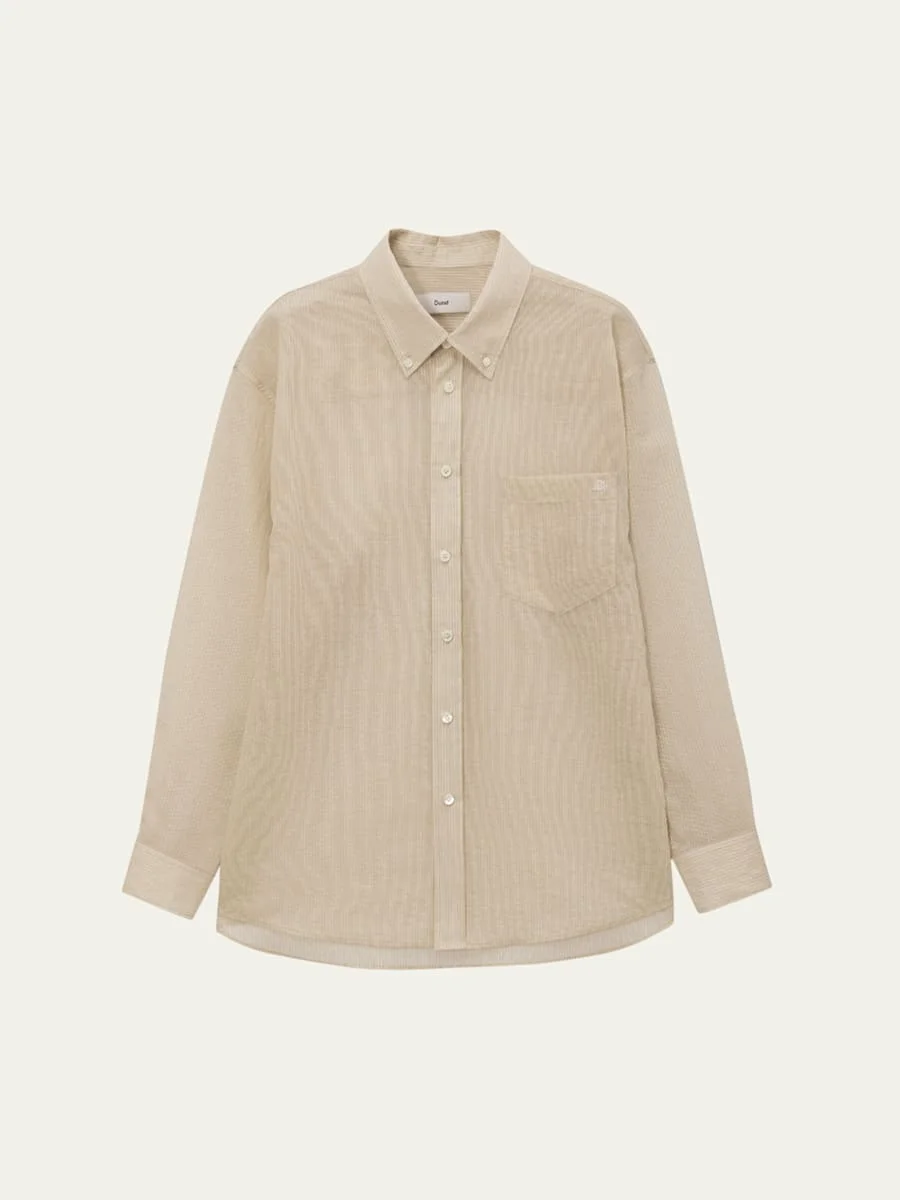 Dunst sheer shirt Point collar Dropped shoulders Long sleeves with button cuffs Chest pocket Oversized fit Hem falls to the hip Button-front Nylon/polyamide/cotton Dry clean Imported Online Inquiries: BGS21_T6KWP| Store Inquiries: #4999915