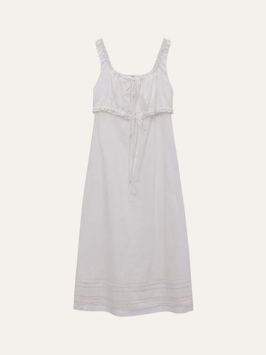 Dunst cotton midi dress enhanced with a shirred bodice Scoop neckline with self-tie Sleeveless Empire waistline with adjustable tie Hem falls below the knee Slipover style Cotton Machine wash Imported Online Inquiries: BGS21_T6KWB| Store Inquiries: #4999902