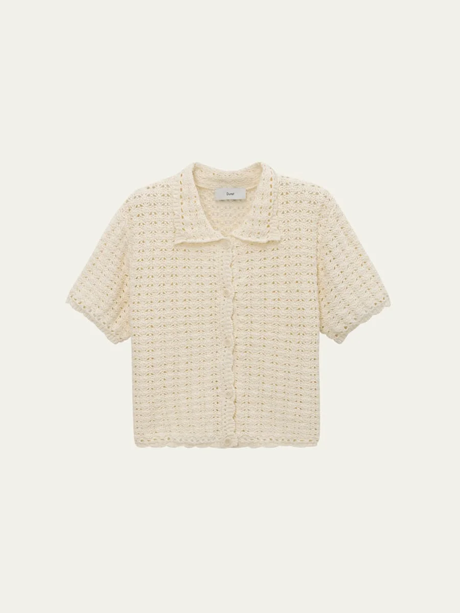 Dunst cotton crochet cardigan finished with scalloped trim Point collar Short sleeves Classic fit Button-front Cotton Imported Online Inquiries: BGS21_T6KWC| Store Inquiries: #4999903