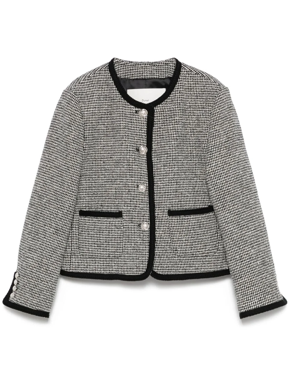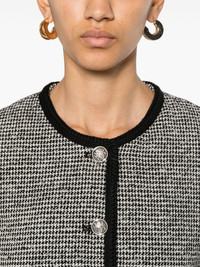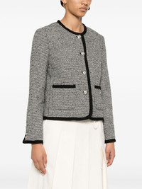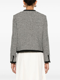 tweed jacket Highlights - Black - Front button fastening - Two front patch pockets - Buttoned cuffs - Full lining Imported Composition Outer: Wool 59%, Polyester 41% Lining: Polyester 100% SIZE & FIT Model measurements Height 5 ft 10 in(1.77 m) Bust/Chest 31.88 in(81 cm) Hips 36.22 in(92 cm) Waist 24.01 in(61 cm) FittingInformation Designed for a boxy fit, intended for a loose fit throughout Made from a midweight non-stretch fabric Washing instructions Dry Clean Only