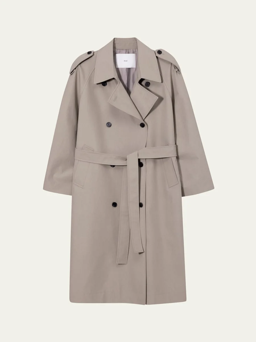 Dunst unisex trench coat with a self-tie belt Notched collar Double-breasted front Epaulets Long raglan sleeves with belted cuffs Angled side pockets Oversized fit Hem falls below the knee Button-front Polyester Lining: Polyester Dry clean Imported Online Inquiries: BGS21_T6XEV| Store Inquiries: #5061020