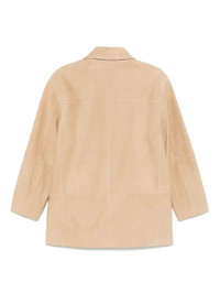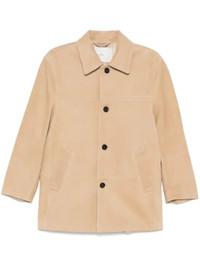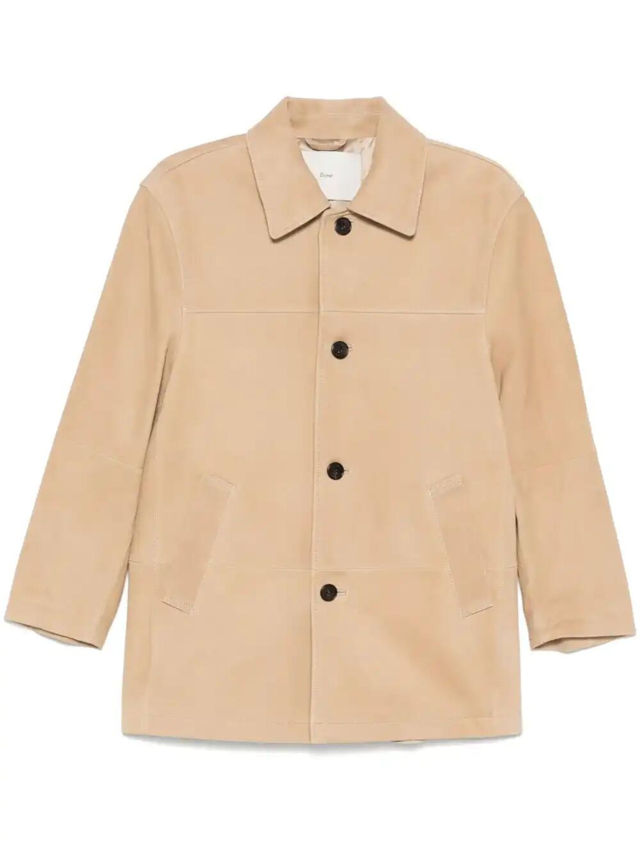 sand beige front button fastening two side welt pockets long sleeves When buying this unisex item, keep in mind that it is graded in standard men's sizing. Size & Fit Model Measurements: Bust: 0cm Height: 0cm Hips: 0cm Waist: 0cm Fabric and Care Designer Style ID: UDJA5A106I3 Designer Colour: CAMEL BEIGE Composition: Outer: Goat suede 100%; Lining: Polyester 100% Washing instructions: Do Not Wash/Do Not Dry Clean