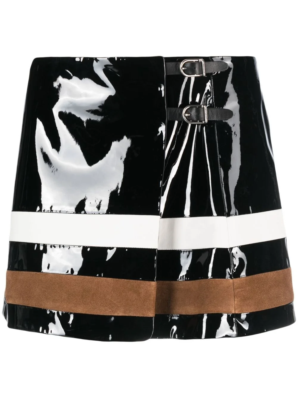 buckle-fastening patent-leather miniskirt Highlights - Jet black/camel brown/optical white - Calf leather/lambskin - Patent finish - Low-rise - Off-centre front buckle fastening - Straight hem - Thigh-length Made in Italy Composition Outer: Calf Leather 100%, Lamb Skin 100% Lining: Viscose 100% SIZE & FIT Model measurements Height 5 ft 10 in(1.79 m) Bust/Chest 33.07 in(84 cm) Hips 35.82 in(91 cm) Waist 24.01 in(61 cm) FittingInformation This mini-length skirt is intended to be worn just below the waist Soft leather has a supple and smooth construction offering some flexibility This piece fits true to size – take your usual size Washing instructions Specialist Cleaning