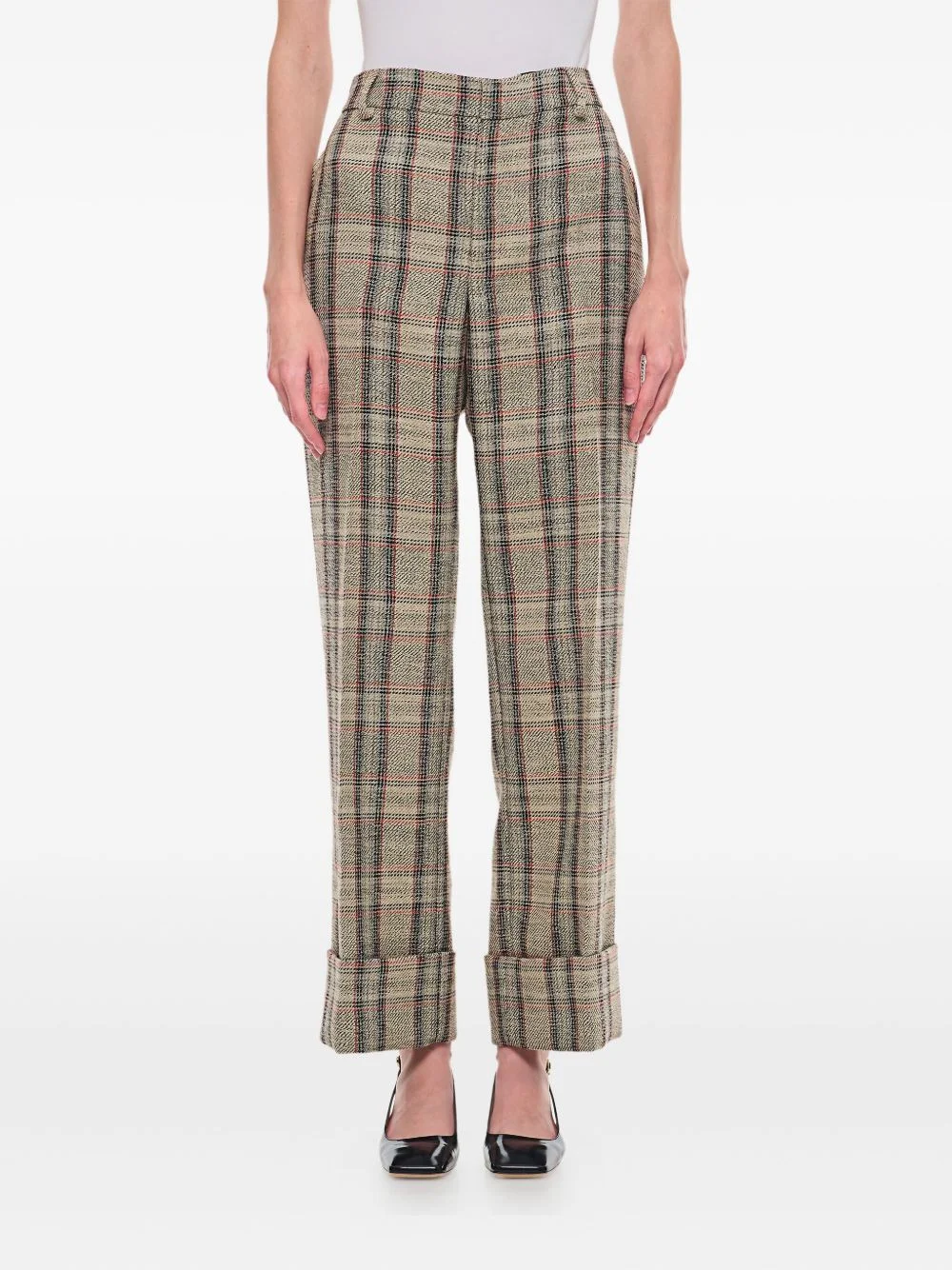 tartan-check cuffed trousers Highlights - Grey beige - Tartan check pattern - Cuffed hems - Straight leg - High waist - Button fly Made in Italy Composition Wool 100% Washing instructions Read Manufacturer Guidelines