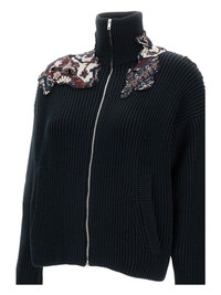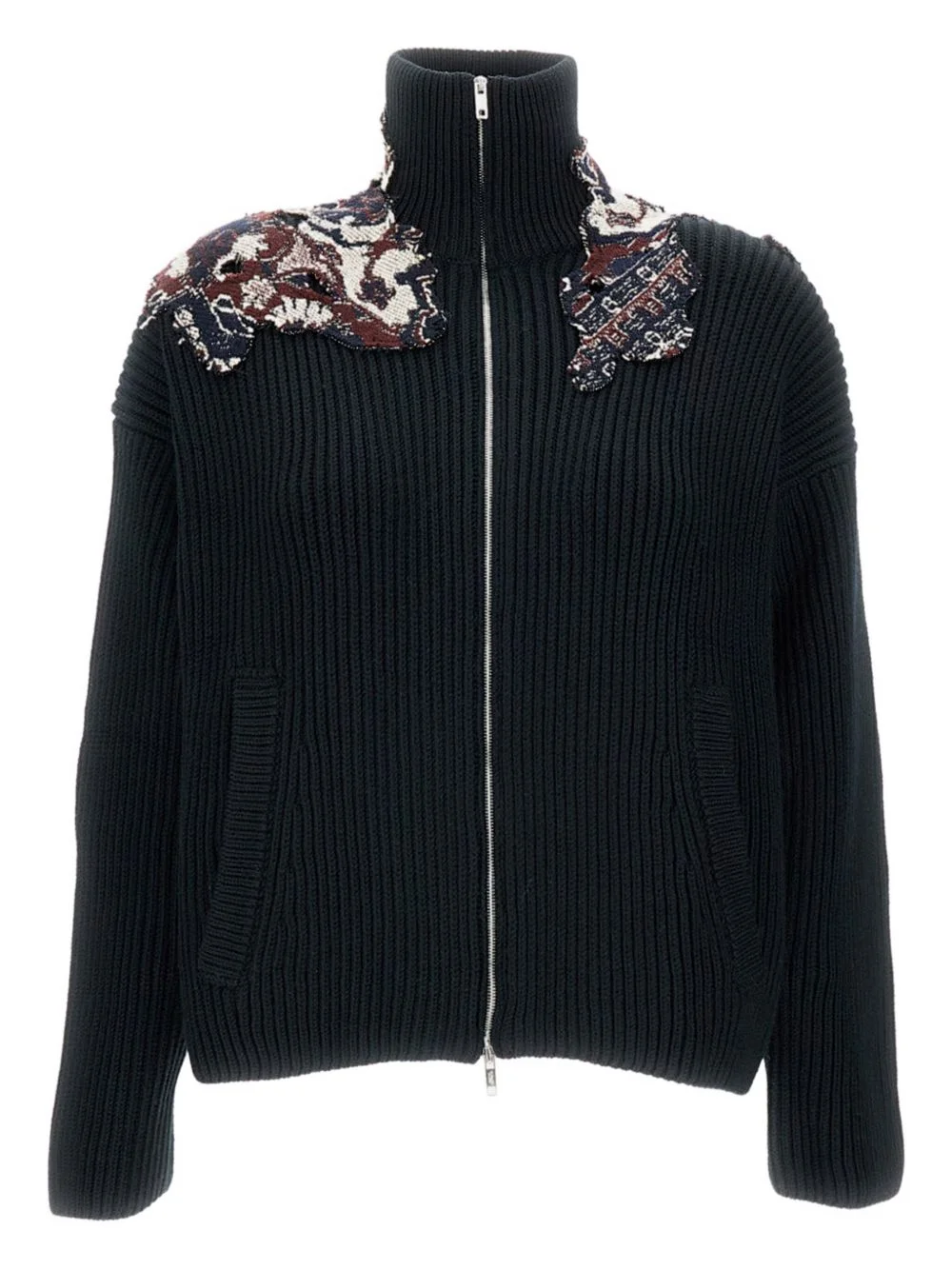 ribbed applique jacket Highlights - Black - Ribbed weave - High neck - Two-way zip front closure - Printed fabric appliques - Wool Made In Italy Composition Virgin Wool 100% Washing instructions Read Manufacturer Guidelines