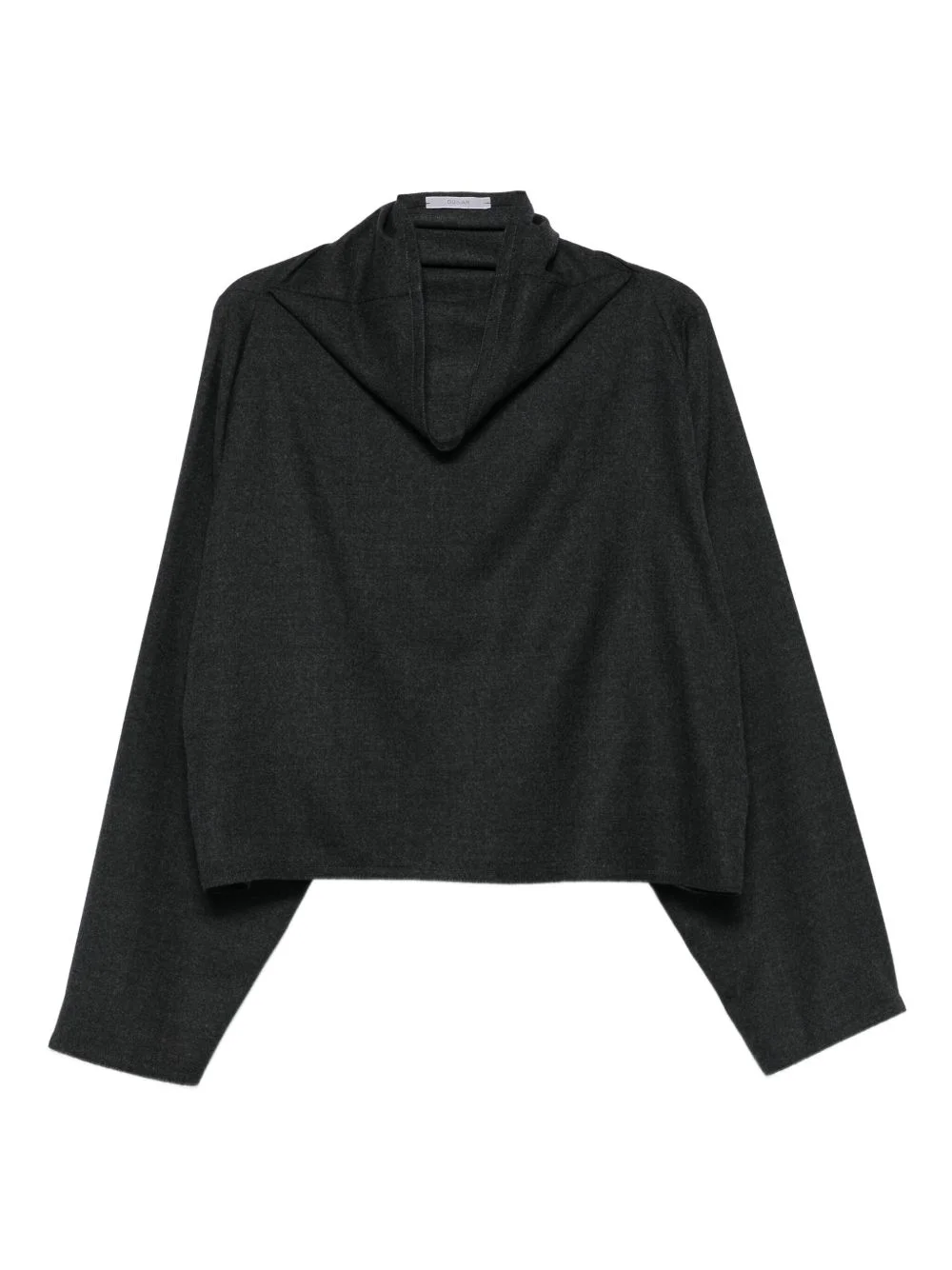 funnel-neck boxy top Highlights - Charcoal grey - Funnel neck - Long sleeves - Boxy shape - Wide cuffs Made in Italy Composition Wool 100% Washing instructions Read Manufacturer Guidelines