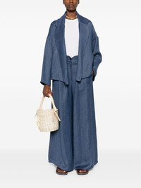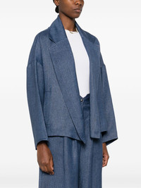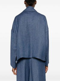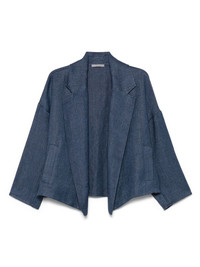 linen jacket Highlights - Indigo blue - Two side welt pockets - Drop shoulder - Long sleeves Made in Italy Composition Linen/Flax 100% SIZE & FIT Model measurements Height 5 ft 10 in(1.78 m) Bust/Chest 31.49 in(80 cm) Hips 37 in(94 cm) Waist 23.62 in(60 cm) Measurement BUST 59.05 in(150 cm) LENGTH 23.62 in(60 cm) Shoulder Width 28.34 in(72 cm) SLEEVE LENGTH 17.71 in(45 cm) WAIST 59.05 in(150 cm) FittingInformation Designed to be unstructured, offering a loose fit throughout Made from a midweight non-stretch fabric This piece is only produced in one size; for help with this item's sizing, refer to our product measurements