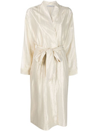 metallic belted trench coat Highlights - Gold-tone - Metallic threading - V-neck - Long sleeves - Belted waist - Mid-length Made in Italy Composition Silk 100% Lining: RDS Product Name: BLACK ORCHID EDP Division: TF (TOM FORD BEAUTY) ALCOHOL DENAT. 100%
