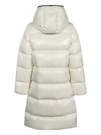 hooded padded coat Highlights - White - Front two-way zip fastening - Two side welt pockets - Slouchy hood - Logo patch at the chest Imported Composition Polyamide 100%