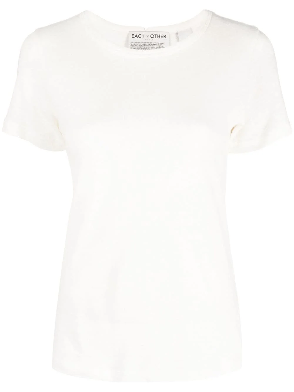 round neck T-shirt Highlights - Off-white - Cotton-linen blend - Round neck - Short sleeves - Straight hem Imported Composition Linen/Flax 50%, Cotton 50% SIZE & FIT Model measurements Height 5 ft 10 in(1.78 m) Bust/Chest 31.49 in(80 cm) Hips 37 in(94 cm) Waist 23.62 in(60 cm) FittingInformation Designed for a slim fit that sits just away from the body offering a close yet comfortable fit Made with a midweight knit, this piece offers some stretch This piece fits true to size – take your usual size