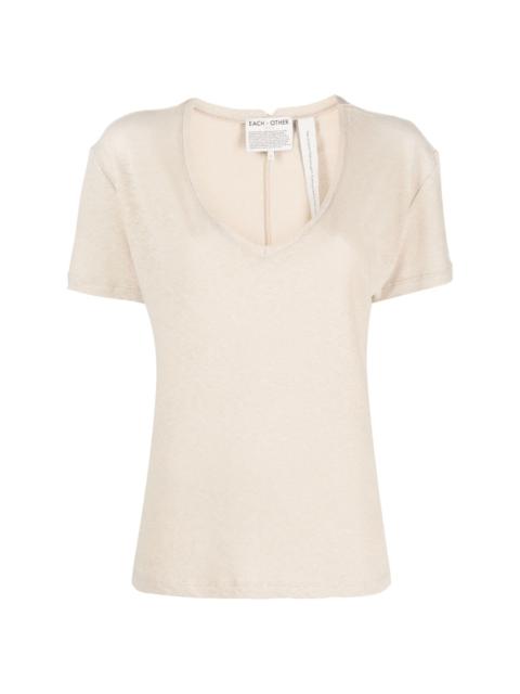 V-neck melange T-shirt Highlights - Light beige - Cotton-linen blend - Melange effect - V-neck - Short sleeves - Straight hem Imported Composition Linen/Flax 50%, Cotton 50% SIZE & FIT Model measurements Height 5 ft 11 in(1.8 m) Bust/Chest 31.49 in(80 cm) Hips 35.43 in(90 cm) Waist 24.4 in(62 cm) Washing instructions Machine Wash
