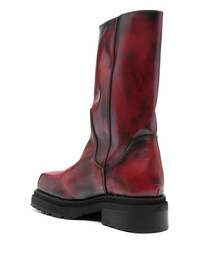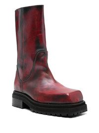 45mm Stacked boots Highlights - Burgundy red/black - Leather - Smooth grain - Burnished finish - Pull-on style - 45mm low block heel - Mid-calf length - Square toe - Branded leather insole - Rubber lug sole - This piece comes complete with a protective dust bag. Imported Composition Leather 100% SIZE & FIT Measurement CIRCUMFERENCE 12.59 in(32 cm) HEEL 1.77 in(4.5 cm) HEIGHT 9.64 in(24.5 cm) Sole height 1.18 in(3 cm)