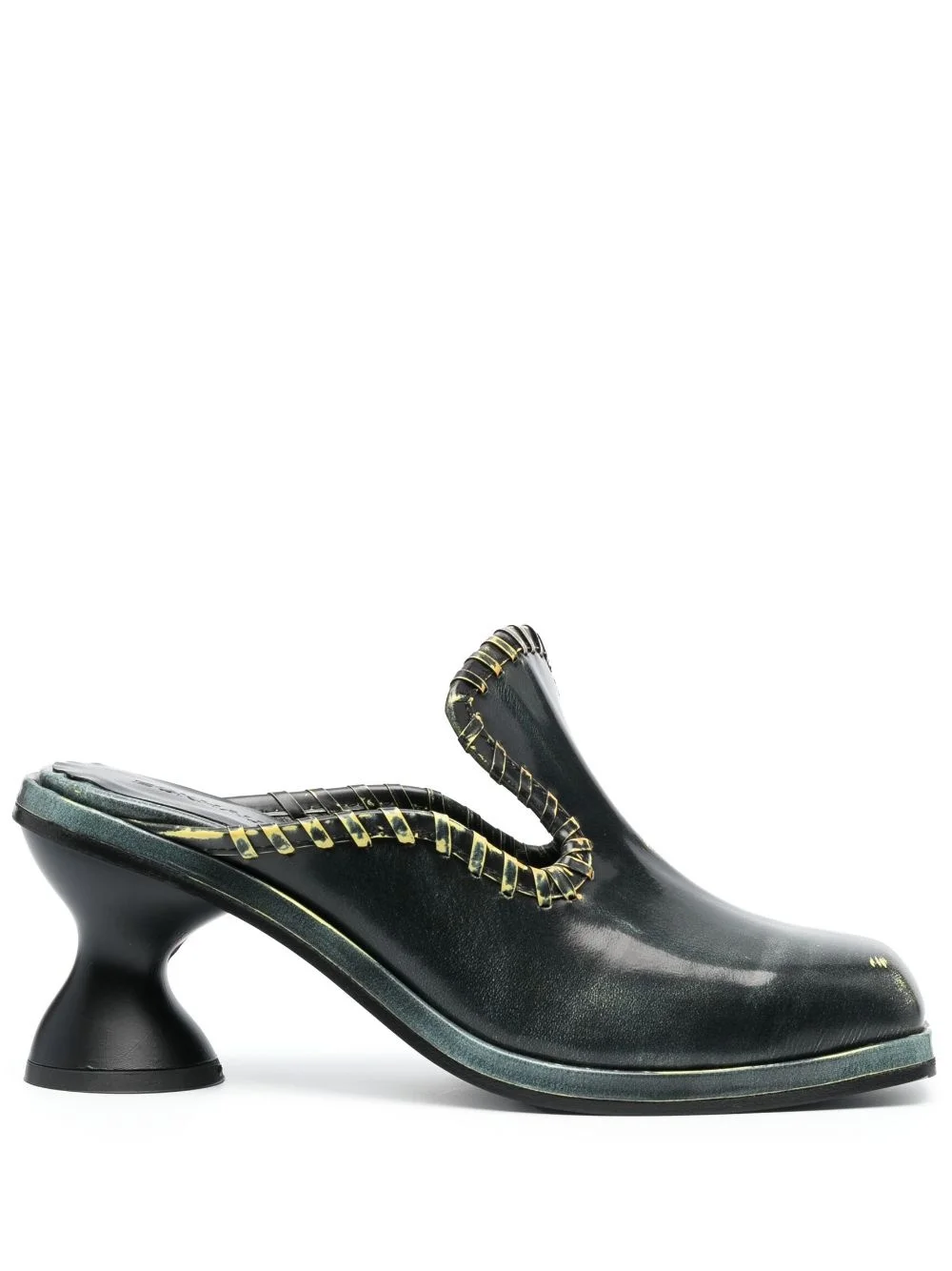 75mm square-toe leather mules Highlights - Black - Leather - Contrast stitching - Square toe - Slip-on style - 75mm mid sculpted heel - Branded leather insole Imported Composition Leather 100% SIZE & FIT Measurement HEEL 2.95 in(7.5 cm) Sole height 0.78 in(2 cm)