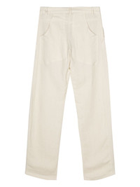 basket weave loose-fit trousers Highlights - Ecru - Cotton-linen blend - Basket weave - Belt loops - Two diagonal pockets to the sides - Seam detailing - Straight leg - Two rear patch pockets - Concealed front button, hook and zip fastening - When buying this unisex item, keep in mind that it is graded in standard men's sizing. Imported Composition Cotton 54%, Linen/Flax 46%