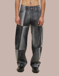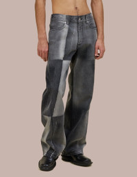 Mid-rise pant in 14oz black cotton denim, hand-bleached in bold, graphic patterns that mimic natural sun fading. Features a bowed leg, twisted side seams, and signature EL back pockets. 24: 33CM WAIST, 29CM RISE, 82CM INSEAM, 46CM HEM CIRCUMFERENCE, 51CM HIP 25: 34CM WAIST, 29CM RISE, 82CM INSEAM, 46CM HEM CIRCUMFERENCE, 52CM HIP 26: 35CM WAIST, 30CM RISE, 82CM INSEAM, 46CM HEM CIRCUMFERENCE, 53CM HIP 27: 36CM WAIST, 30CM RISE, 82CM INSEAM, 48CM HEM CIRCUMFERENCE, 54CM HIP 28: 37CM WAIST, 31CM RISE, 82CM INSEAM, 48CM HEM CIRCUMFERENCE, 55CM HIP 29: 39CM WAIST, 31CM RISE, 82CM INSEAM, 50CM HEM CIRCUMFERENCE, 56CM HIP 30: 40CM WAIST, 31CM RISE, 82CM INSEAM, 50CM HEM CIRUMFERENCE, 58CM HIP 31: 42CM WAIST, 32CM RISE, 82CM INSEAM, 52CM HEM CIRCUMFERENCE, 59CM HIP 32: 43CM WAIST, 32CM RISE, 82CM INSEAM, 54CM HEM CIRCUMFERENCE, 58CM HIP 33: 44CM WAIST, 32CM RISE, 82CM INSEAM, 54CM HEM CIRCUMFERENCE, 60CM HIP 34: 45CM WAIST, 33CM RISE, 82CM INSEAM,54CM HEM CIRCUMFERENCE, 62CM HIP 35: 47CM WAIST, 33CM RISE,82CM INSEAM, 54CM HEM CIRCUMFERENCE, 63CM HIP 36: 48CM WAIST, 33CM RISE, 82CM INSEAM, 54CM HEM CIRCUMFERENCE, 64CM HIP Models wear sizes 27 and 30 100% COTTON Produced in USA