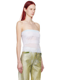 Semi-sheer knit stretch polyester tube top. · Seamless layered construction · Rib knit stretch neck · Cutout at front · Cropped hem Supplier color: Magnolia