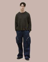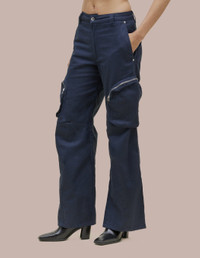 Low-rise with a straight leg, crafted from 9oz Japanese denim. Features utility detailing throughout, including cargo pockets with metal zippers. Finished with a circular patch at the back and signature EL pockets. 100% COTTON Produced in USA.