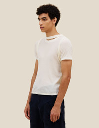 Double-layered tee in fine-gauge Japanese cotton/nylon rib, featuring a hem that folds upward at the back.