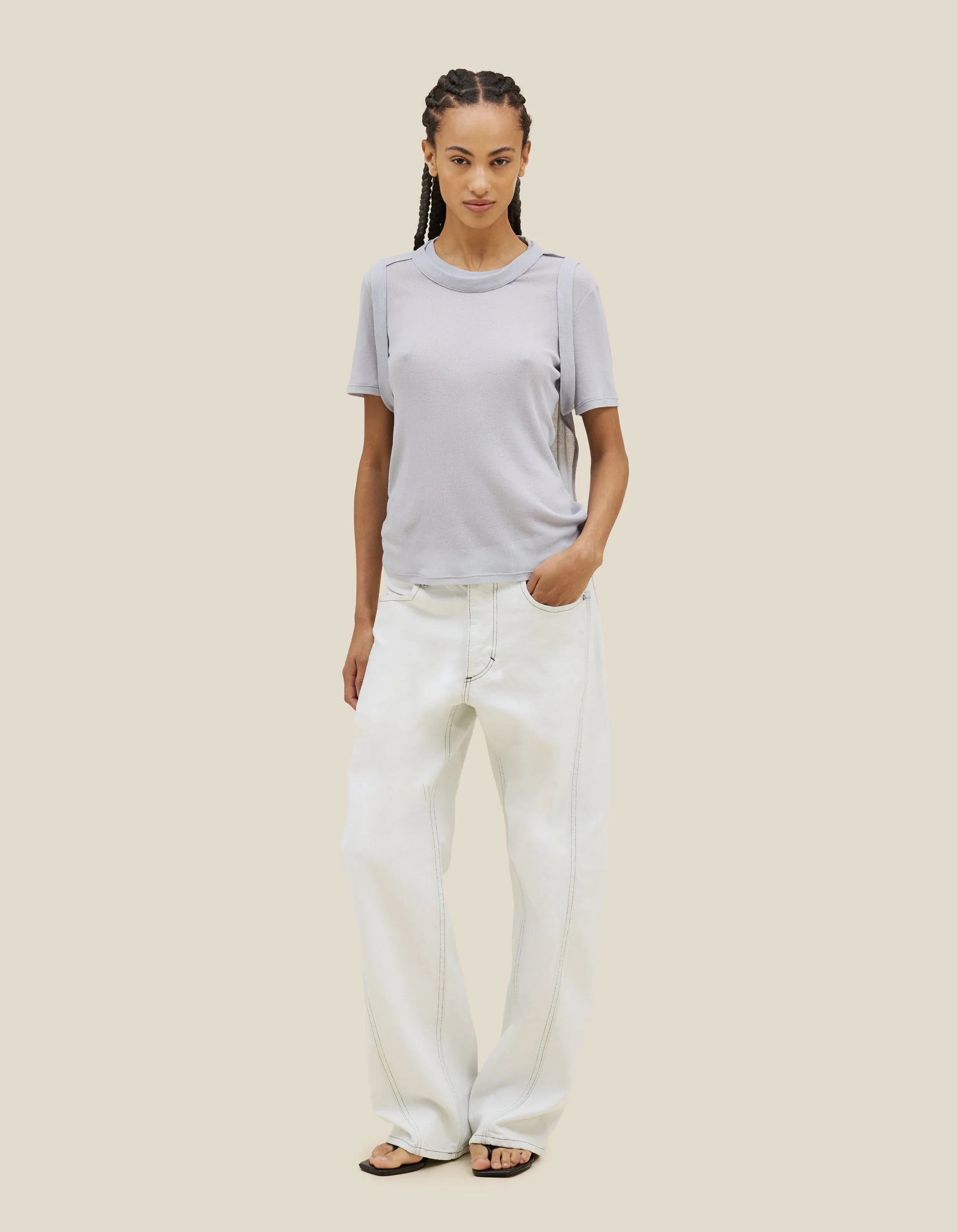 Double-layered tee in fine-gauge Japanese cotton/nylon rib, featuring a hem that folds upward at the back.