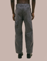 Our workwear-inspired double knee baggy jean includes a secondary front panels fastened with nickel rivets. In a 12oz cotton, garment-dyed and distressed for a lived in feel. Mid-rise with a slightly dropped crotch. Semi-cropped inseam is 28” for all sizes. Finished with our signature back pockets, zip-fly closure and logo shank. Models wear sizes 27 and 30. 100% cotton. Produced in USA.