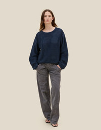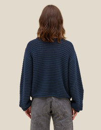 This sweater is knit from Tanguis cotton with a relaxed, drop-shoulder fit and a slip-stitch knit structure. Models wear size medium 100% TANGUIS COTTON Produced in Peru