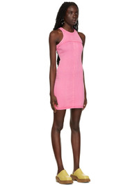 Cotton jersey dress. Raw edges throughout. · Rib knit crewneck and armscyes · Logo printed at back Supplier color: Petunia 100% cotton. Made in Peru 222830F052001