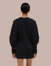 A mini dress featuring dolman sleeves and bound curvilinear seams creating definition as they move across your body. Made from a boiled wool cotton blend. Model wears size small 53% WOOL 47% COTTON Produced in China