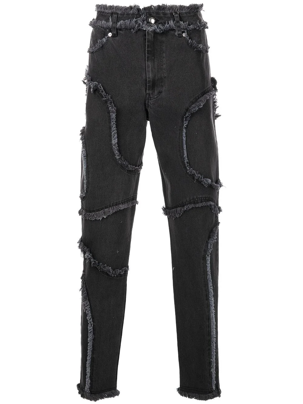 seam-detail cropped jeans Eckhaus Latta puts a twist on the classic skinny jean silhouette with raw-cut seam detailing here. This creates a relaxed off-duty look for the pair. Imported Composition Body: Cotton 100% SIZE & FIT Model measurements Height 6 ft 2 in(1.88 m) Bust/Chest 38.18 in(97 cm) Hips 37 in(94 cm) Waist 29.92 in(76 cm) FittingInformation This piece is unisex. Please take care when selecting your size Designed for a close fit for men and a slim fit for women Made with a heavyweight fabric