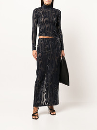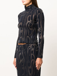 Shrunk turtleneck long-sleeve top midnight blue abstract pattern print funnel neck long sleeves straight hem Imported Composition Cotton 82%, Polyester 18% SIZE & FIT Model measurements Height 5 ft 10 in(1.77 m) Bust/Chest 29.92 in(76 cm) Hips 35.03 in(89 cm) Waist 24.01 in(61 cm) Measurement SLEEVE LENGTH 23.62 in(60 cm) Shoulder Width 12.2 in(31 cm) LENGTH 18.5 in(47 cm) BUST 27.55 in(70 cm) FittingInformation This piece fits true to size. We recommend you get your regular size Designed for a close fit at the bust, waist and hips Made with a lightweight stretch fabric