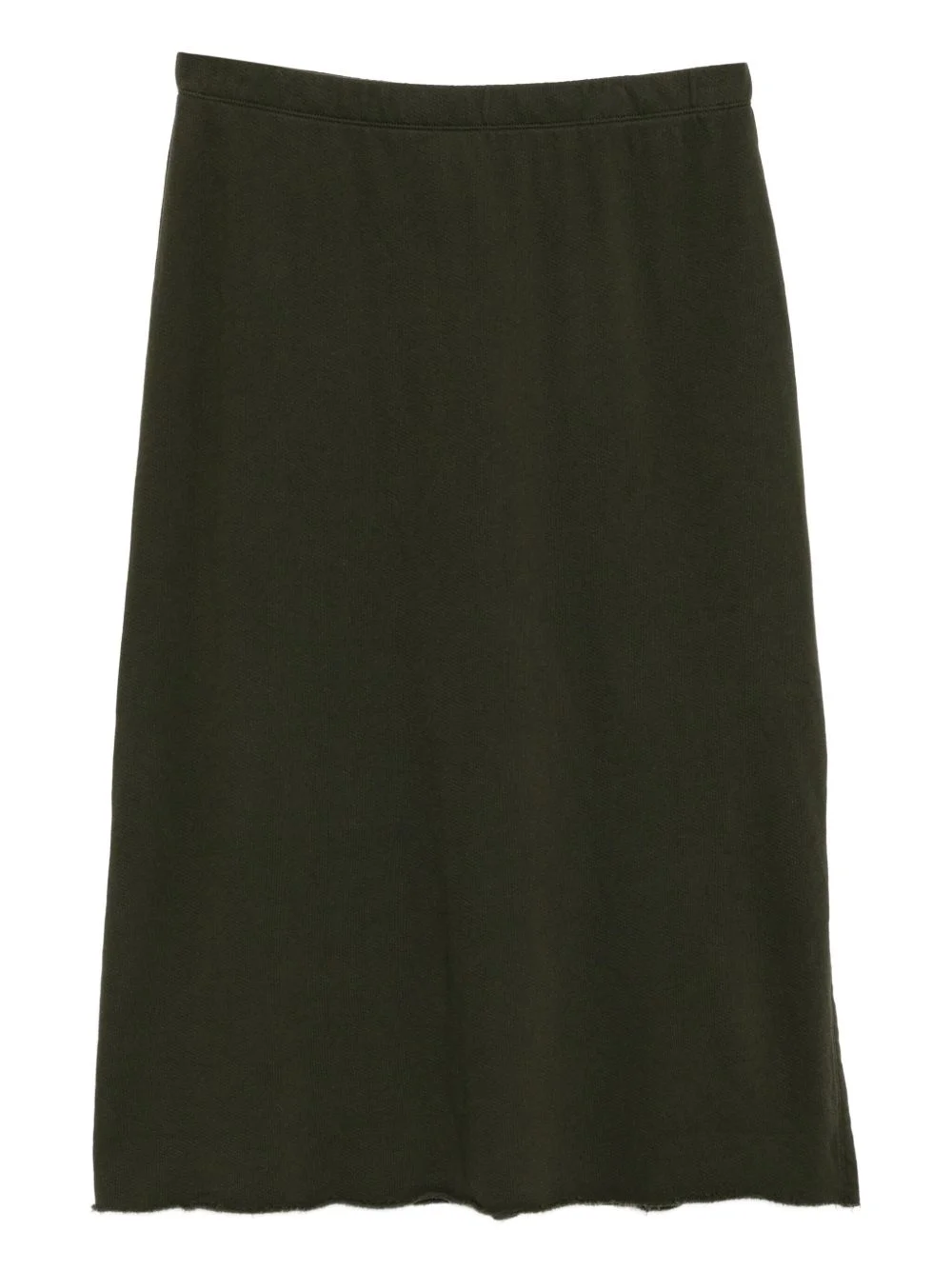 A line skirt Highlights - Dark green - Elasticated waistband - Side slit - Raw-cut hem Imported Composition Organic Cotton 100% SIZE & FIT Model measurements Height 6 ft 2 in(1.88 m) Bust/Chest 36.61 in(93 cm) Hips 36.22 in(92 cm) Waist 27.55 in(70 cm) FittingInformation This midi-length skirt is intended to be worn just below the waist The elasticated waist allows for a comfortable fit Made from a midweight non-stretch fabric, this piece offers minimal elasticity when worn Washing instructions Machine Wash