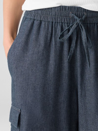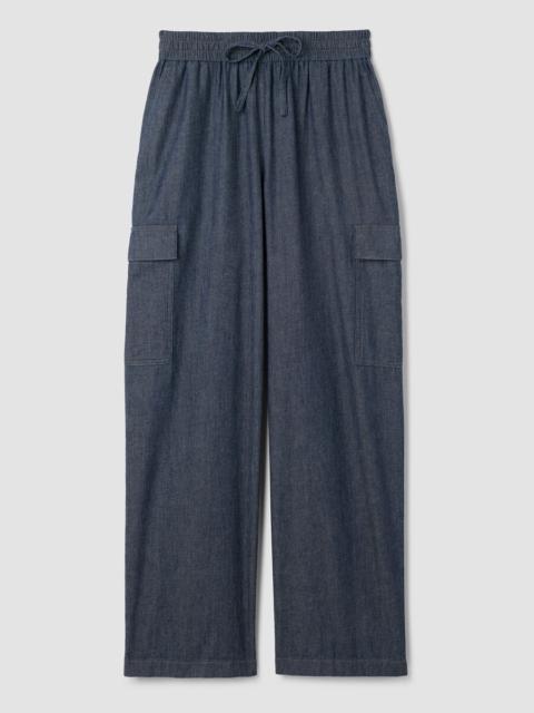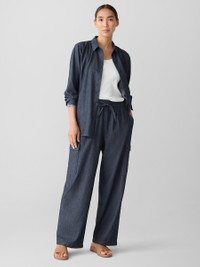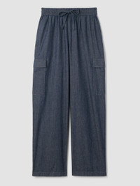 Utilitarian inspired with a relaxed feel. A straight-leg cargo pant with side pockets, in indigo-dyed organic cotton. Made in a Fair Trade Certified™ factory. Style No. S5PGG-P4799 DESIGN - Straight through the leg. Fits the body with ease. - Only available online. - Polina is 5'10" and wears a size XS. - 2-inch elastic waistband with drawstring. - Slash pockets, cargo side pockets. - 11-inch rise, 30-inch inseam, 10-inch leg opening (size XS). 11-inch rise; 28-inch inseam; 9 1/2-inch leg opening (size PS). 14-inch rise, 30-inch inseam, 11-inch leg opening (size 1X). - Style No. S5PGG-P4799 FABRIC - Inspired by chambray. An indigo-dyed twill that transitions from season to season. Soft, light and fluid. - Dye may transfer. Use care when wearing. - Made in Indonesia. 100% Organic Cotton. SUSTAINABILITY - Our Fair Trade Certified™ factories meet rigorous social and environmental standards. By choosing Fair Trade Certified™ products, you’re helping to improve the lives of workers, build resilient communities and protect the environment. - Organic farming supports clean water and healthy soil.