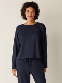 Soft and simple. The round neck box-top in our best-loved terry—fleecy on the inside with the natural stretch of a knit. So soft, we call it the "Hug." Style No. F5FYW-T6241 DESIGN - A generous, boxy fit that drapes away from the body to create movement. - Select colors may vary by store. - Kalyane is 5'10" and wears a size S, which measures 23 inches on the body. Size1X measures 25 1/2 inches on the body. - Round neck, drop shoulder. - Style No. F5FYW-T6241 FABRIC - An evolution of our best-loved terry. Smooth and soft with a brushed fleecyinterior for a cozier feel. Knit in the US with Tencel™ Lyocell. - Machine wash cold. Line dry. - Made in USA of imported materials. 65% Tencel™ Lyocell/28%Organic Cotton/7% Elastane. SUSTAINABILITY - Tencel™ Lyocell fiber is made from responsibly harvested trees.