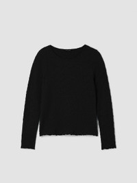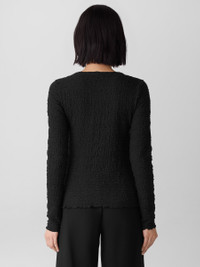 Soft and substantial, with plenty of texture. The round neck top with long sleeves, in our bouncy new Bubble Jacquard. Style No. F5KSE-T6372 DESIGN - Our closest fit, designed to hug the body. With stretch for maximum comfort. - Only available at select EILEEN FISHER stores. - Kalyane is 5'10" and wears a size S, which measures 23 1/2 inches on the body. - Lettuce edge at the hem. - Style No. F5KSE-T6372 FABRIC - An intricate knit with substance and stretch. In a textural blend of soft cotton and recycled polyester—dress it up, dress it down. - Machine wash cold. Tumble dry low. May snag on jewelry. - Made in Vietnam. 55% Organic Cotton/44% Recycled Nylon/1% Spandex. SUSTAINABILITY - Recycled nylon keeps waste out of the landfill. It's part of our commitment to changing the way clothes are made.
