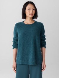 Blissfully soft. A long crew neck top with ribbed details, in a luxe and textural blend of cashmere and silk. Style No. F5MPS-W6139 DESIGN - Close at the shoulders, wider at the hem. A silhouette that fits the body with ease. - Kalyane is 5'10" and wears a size S, which measures 27 inches on the body. Size 1X measures 29 1/2 inches on the body. - Crew neck, raglan seams. - Ribbed details at the cuffs and hem. - Style No. F5MPS-W6139 FABRIC - One of our softest yarns, an Italian boucle with textural poufs of cashmere and silk. - Hand wash cold. Reshape and lay flat to dry. May snag on jewelry. - Made in Romania. 72% Cashmere/17%Silk/10% Recycled Nylon/1% Elastane SUSTAINABILITY - This fiber is certified to the Sustainable Fibre Alliance Cashmere Standard and is produced in a way that protects animal welfare and promotes safe working conditions.