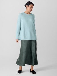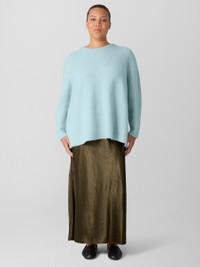 Blissfully soft. A long crew neck top with ribbed details, in a luxe and textural blend of cashmere and silk. Style No. F5MPS-W6139 DESIGN - Close at the shoulders, wider at the hem. A silhouette that fits the body with ease. - Kalyane is 5'10" and wears a size S, which measures 27 inches on the body. Size 1X measures 29 1/2 inches on the body. - Crew neck, raglan seams. - Ribbed details at the cuffs and hem. - Style No. F5MPS-W6139 FABRIC - One of our softest yarns, an Italian boucle with textural poufs of cashmere and silk. - Hand wash cold. Reshape and lay flat to dry. May snag on jewelry. - Made in Romania. 72% Cashmere/17%Silk/10% Recycled Nylon/1% Elastane SUSTAINABILITY - This fiber is certified to the Sustainable Fibre Alliance Cashmere Standard and is produced in a way that protects animal welfare and promotes safe working conditions.