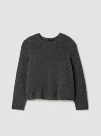 A simple silhouette with blissfully soft texture. The crew neck top with ribbed hem, in a textural blend of cashmere and silk you'll reach for all season long. Style No. F5MPS-W6251 DESIGN - A generous, boxy fit that drapes away from the body to create movement. - Select colors may vary by store. - Jisu is 5'9" and wears a size XS, which measures 22 1/2 inches on the body. Size 1X measure 25 inches on the body. - Crew neck, ribbed trim at the hem. - Style No. F5MPS-W6251 FABRIC - One of our softest yarns, an Italian boucle with textural poufs of cashmere and silk. - Hand wash cold. Do not wring. Reshape and lay flat to dry. May snag on jewelry. - Made in Romania. 72% Cashmere/17% Silk/10% Recycled Nylon/1% Elastane. SUSTAINABILITY - This fiber is certified to the Sustainable Fibre Alliance Cashmere Standard and is produced in a way that protects animal welfare and promotes safe working conditions.