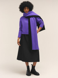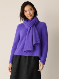 Blissfully soft. A plush scarf with subtly ribbed ends. In a textural blend of cashmere and silk. Style No. F5MPS-A2100 DESIGN - Only available at select EILEEN FISHER stores. - Generously sized to serve as a scarf or a wrap. - 75 inches long by 14 inches wide; ribbed ends. - Style No. F5MPS-A2100 - SKU: 198895128494 FABRIC - One of our softest yarns, an Italian boucle with textural poufs of cashmere and silk. - Hand wash cold. Do not wring. Reshape and lay flat to dry. May snag on jewelry. - Made in Romania. 72% Cashmere/17% Silk/10% Recycled Nylon/1% Elastane. SUSTAINABILITY - This fiber is certified to the Sustainable Fibre Alliance Cashmere Standard and is produced in a way that protects animal welfare and promotes safe working conditions.